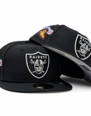 The Las Vegas Raiders 2001 Pro Bowl 59Fifty Fitted Hat by New Era is designed for true football enthusiasts who appreciate style and heritage. Crafted in sleek black, this fitted cap features the iconic Raiders logo boldly embroidered on the front, celebrating the rich legacy of one of the NFL’s most legendary franchises. A standout 2001 Pro Bowl side patch graces the left mid-panel, marking an unforgettable moment in football history.