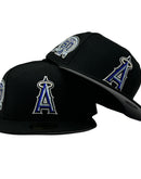 Introducing a unique custom Los Angeles Angels 50th anniversary gray brim New Era fitted hat from Sports World. The 59Fifty high crown fitted hat is designed with a sleek all black color cap that provides a bold contrast to the classic design.