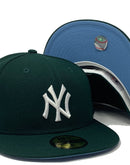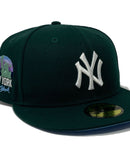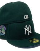 Presenting Dark Green New York Yankees Statue of Liberty custom New Era fitted hat from Sports World. 59Fifty high crown with icy blue under visor. Front logo in white. Statue of liberty side patch in purple, light purple, lavender and sky blue. White sweatband. 100 percent polyester. Imported from Bangladesh.