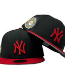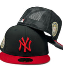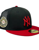Introducing a unique customĀ New York Yankees world series New Era fitted hat from Sports World 165. The 59Fifty high crown fitted hat is designed with a sleek all black color cap with red visor.