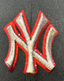 - Metallic gray Yankees front logo with a bold red outline, exuding sophistication and team pride.