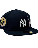 Introducing a unique custom New York Yankees gray brim New Era fitted hat from Sports World. The 59Fifty high crown fitted hat is designed with a sleek all navy blue color cap that provides a bold contrast to the classic design.