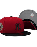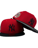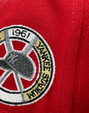 Introducing a unique custom New York Yankees 1961 world series New Era fitted hat from Sports World 165. The 59Fifty high crown fitted hat is designed with a sleek all red color cap with black visor.