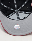 The flat metallic MLB logo on the back is a classic feature of new era fitted hats, making it the perfect addition to this stylish and comfortable design. The gray undervisor adds a subtle touch of color that blends seamlessly with the rest of the design, making it the perfect accessory to wear to any game.