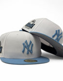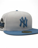 Introducing a unique custom New York Yankees 2024 world series New Era fitted hat from Sports World 165. The 59Fifty high crown fitted hat is designed with a sleek all white color cap with sky blue visor.