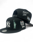 • Classic black cap with white Yankees logo and Statue of Liberty logo on front right panel