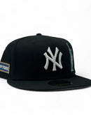 Show off your passion for both baseball and the vibrant spirit of New York City with the New York Yankees City Transit Black Fitted Hat. Featuring a sleek all-black design, this hat combines iconic symbols of the Big Apple with timeless Yankees pride. The bold white Yankees logo on the front brings team spirit to life, while the Statue of Liberty logo on the front right panel adds an undeniable New York flair. The intricate embroidery along the mid and back panels, including the train, city map, Empire State Building script, and station sign details, adds a layer of depth and uniqueness to this hat, making it a must-have for both sports enthusiasts and fashion-forward individuals.