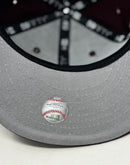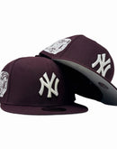 Introducing a unique custom New York Yankees Subway series New Era fitted hat from Sports World 165. The 59Fifty high crown fitted hat is designed with a sleek all dark maroon color cap.