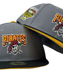 Introducing a unique custom Pittsburgh Pirates 2006 All star Game Yellow brim New Era fitted hat from Sports World. The 59Fifty high crown fitted hat is designed with a sleek all dark gray color cap with a black visor that provides a bold contrast to the classic design.