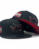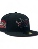 Introducing a unique custom Tampa Bay Rays Tropicana Field red brim New Era fitted hat from Sports World. The 59Fifty high crown fitted hat is designed with a sleek all black color cap that provides a bold contrast to the classic design.
