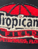 The front logo in metallic black with red and metallic aluminum outline is the perfect representation of the team, giving it a modern and stylish appeal that any Rays fan would love. Tropicana Field side patch on the left mid-panel adds a unique touch to the design, commemorating a special moment in the team's history.