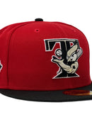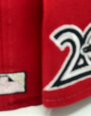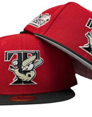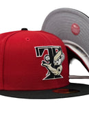 Introducing a unique custom Toronto Blue Jays gray brim New Era fitted hat from Sports World. The 59Fifty high crown fitted hat is designed with a sleek all red color cap with black visor that provides a bold contrast to the classic design.