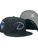 Introducing the stunning Arizona Diamondbacks 1998 Inaugural Season Gray Brim New Era Fitted Hat, a masterpiece brought to you by Sports World 165. Elevate your style with this exceptional custom 59Fifty high crown fitted hat, meticulously crafted to impress every sports enthusiast and fashion aficionado alike. Designed with meticulous attention to detail, this exclusive hat is a tribute to the team's rich heritage, celebrating their inaugural season in the most stylish way possible.