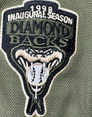 This 59Fifty high crown cap features a unique and stylish design, with an all-olive green color cap with black visor. The front logo in black, alpine green and seashell, making it stand out from other Diamondbacks hats. The Inaugural season 1998 side patch on the left mid-panel adds a special touch to the hat, while the tonal New Era flag on the right mid-panel completes the design.