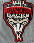 This 59Fifty high crown cap features a unique and stylish design, with an all-storm gray color cap. The front logo in red with black and metallic silver outline, making it stand out from other Diamondbacks hats. The Inaugural season 1998 side patch on the left mid-panel adds a special touch to the hat, while the tonal New Era flag on the right mid-panel completes the design.