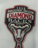 This 59Fifty high crown cap features a unique and stylish design, with an all-white color cap with black visor. The front logo in metallic black with metallic silver outline, making it stand out from other Diamondbacks hats. The Inaugural season 1998 side patch on the left mid-panel adds a special touch to the hat, while the tonal New Era flag on the right mid-panel completes the design.