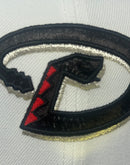 - Front logo in metallic black with metallic silver outline.