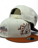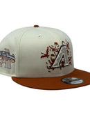 Step into the season of bold style and championship spirit with the Arizona Diamondbacks "Halloween Pack" Snapback Hat. Crafted with precision and designed for collectors and fans alike, this head-turning piece brings together refined tones and vintage charm. The off-white crown creates a clean, balanced base, perfectly complemented by a rust-orange visor that radiates autumn energy. Metallic silver embroidery on the front logo adds a sleek modern touch, while the purple and copper outline captures the team’s rich color story with striking contrast.