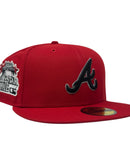 - Features the Atlanta Braves team logo on the front, the iconic 2000 All-Star Game side patch, and an MLB batter man logo on the back.