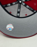 It features all red color cap. Front logo in black with metallic silver outline. This fitted cap boasts a gray under visor with its timeless design and exceptional quality, this hat is perfect for everyday wear or special occasions.