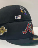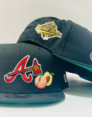 Inspired by his hometown of Atlanta, Georgia, the Offset * Atlanta Braves New era cap Collab. Black 59FIFTY fitted cap features an embroidered braves logo and peach at the front panels with a 1995 world series side patch at the right wear side. Do it for the Culture script above the official MLB batter man logo at the rear. Kelly green under visor