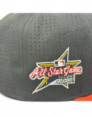 Dedicated to commemorating the illustrious 2025 All-Star game split panel adjustable cap, this snapback encapsulates the essence of the team's legacy. The all-black color cap with an orange visor. The front logo is in the team's original logo. Adorning the left mid-panel is the iconic 2025 All-Star game side patch.