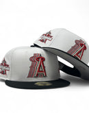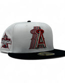 Introducing a unique custom Los Angeles Angels gray brim New Era fitted hat from Sports World. The 59Fifty high crown fitted hat is designed with a sleek all white color cap with black visor that provides a bold contrast to the classic design.