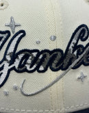 Introducing a unique custom New York Yankees 2000 world series champions New Era fitted hat from Sports World 165. The 59Fifty high crown fitted hat is designed with a sleek all chrome/ off white color cap with navy-blue visor.