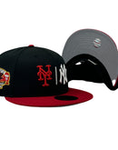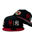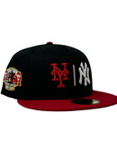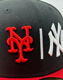 Inspired by the subway Series, we Introduce a unique custom New Era fitted hat from Sports World 165. The 59Fifty high crown fitted hat is designed with a sleek all black color cap with red visor.