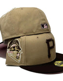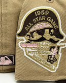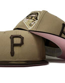 Presenting an exclusive " Bubble tea pack" only from Sports World. 59Fifty high crown cap. This hat is design by sports world, inspired from Pearl milk tea. It features an all-camel color cap with brown visor. front "P" logo in brown. 1959 all star game side patch on left mid panel. tonal new era flag on right mid panel. Flat MLB batter man in the back. pink under visor. white sweat band. 100 percent polyester. imported from Bangladesh. "BUBBLE TEA PIN INCLUDED"