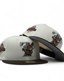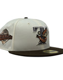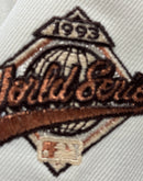 Celebrate one of baseball’s most memorable moments with this meticulously crafted Toronto Blue Jays 1993 World Series off white color Fitted Hat with brown visor. Designed with subtle yet striking detail, this all-chrome color cap captures the thrill of the Blue Jays' iconic win. The metallic pewter, metallic copper and metallic aluminum outline front logo is a refined tribute, adding a modern edge to this timeless piece. A flat MLB logo on the back brings authenticity, while the gray under visor adds a hint of flair, making it ideal for fans and collectors alike. Expertly crafted with top-tier materials, this cap combines comfort, quality, and style in one perfect package.