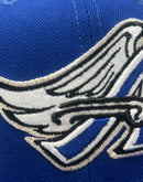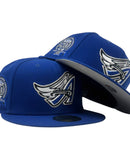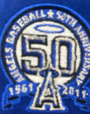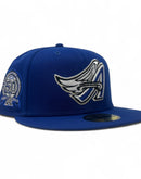 Introducing a unique custom throwback Angels 50th anniversary gray brim New Era fitted hat from Sports World. The 59Fifty high crown fitted hat is designed with a sleek all royal blue color cap that provides a bold contrast to the classic design.