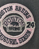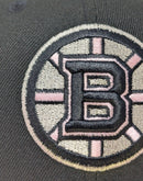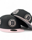 Unveiling a striking addition to your fitted hat collection, this custom Boston Bruins 1924 Inaugural season Fitted New Era cap is a harmonious blend of classic design and modern detailing. The sleek black color crown with a light pink visor is complemented by a bold gray under visor, making it the perfect accessory for any occasion. The front logo, rendered in metallic silver, black, and light pink exudes sophistication, while the 1924 Inaugural season side patch adds a touch of nostalgic charm. Crafted with precision, this hat showcases the iconic NHL logo on the back, rounding off a design that pays tribute to sports heritage. Its gray under visor and black sweatband enhance style and functionality, making it an ideal pick for collectors and enthusiasts alike.