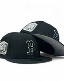 Introducing a unique custom Boston red sox gray brim New Era fitted hat only from Sports World. The 59Fifty high crown fitted hat is designed with a sleek all black color cap that provides a bold contrast to the classic design.