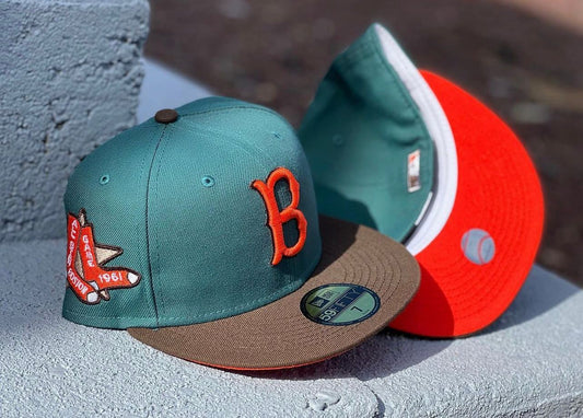Boston Red Sox 1961 All Star Game Pine Needle Green Brown Visor Orange Brim New Era Fitted Hat