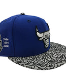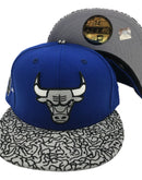 Chicago Bulls New era 59fifty fitted hat, 1996-1998 side patch, royal hat cement print visor, gray under brim, sneaker matchup for air Jordan 3 " varsity royal "
