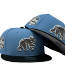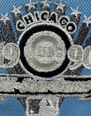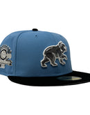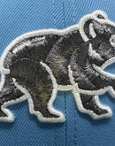 The hat showcases an understated yet striking design, featuring an all- sky blue color cap with black visor, Front logo in metallic gray with white outline that adds a pop of color to the overall look. The front of the cap proudly displays the iconic Bear logo in a captivating combination of metallic gray with white outline, representing the Cubs' formidable spirit. Additionally, the left mid-panel boasts a 1990 All Star Game side patch, symbolizing the team's triumphant journey to baseball glory.