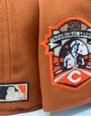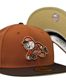 Featuring a unique Rust Orange color crown with a brown visor, this cap is sure to turn heads. The front logo in rust orange, ivory, and brown with copper outline adds a touch of elegance to the design. 2003 inaugural season side patch in left panel.