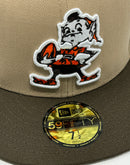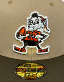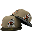 The hat is made of high-quality polyester and features a sleek all-camel color crown with a walnut visor. The front of the hat features the old-school Browns logo, and the left mid panel has a 1999 NFL Draft side patch. The back of the hat has a flat NFL logo.