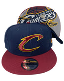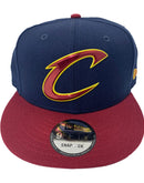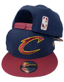navy blue cap with burgundy visor. front logo in liquid chrome. cavs logo under the visor. NBA logoman on back