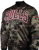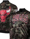 Add a sleek touch to any Chicago Bulls look with this Pro Standard full-snap jacket. It features a quilted lining and ribbed cuffs for extra warmth while the graphics make any fandom stand out against the camo pattern. Give any outfit a bold finish with this eye-catching Chicago Bulls jacket.