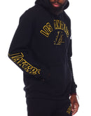 NBA Los Angeles Lakers Stacked Logo Hoodie. Loyalty on game day with this Pullover Hoodie. Pullover. Scuba hood with drawstring. Embroidered fabric applique. 100% cotton.