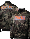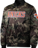 Add a sleek touch to any New York Knicks look with this Pro Standard full-snap jacket. It features a quilted lining and ribbed cuffs for extra warmth while the graphics make any fandom stand out against the camo pattern. Give any outfit a bold finish with this eye-catching New York Knicks jacket.