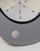 The flat MLB logo in the back is a classic feature of new era fitted hats, making it the perfect addition to this stylish and comfortable design. The gray under the visor adds a subtle touch of color that blends seamlessly with the rest of the design, making it the perfect accessory to wear to any game.