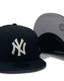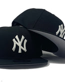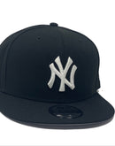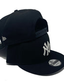 Represent your team with All Black New York Yankees new era 950 snapback hat. It features all black color cap. Front logo in white. Gray under visor. Black sweat band.