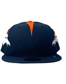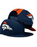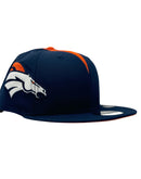Presenting an exclusive custom pack by New Era. This new Era cap resemble the helmet the player wear on the field. It features all navy-blue color cap. Three orange stripes from back panel to one stipe on half front panel. Each mid panel has Bronco's logo. Navy blue new era flag on right mid panel. Navy adjustable bar tack in the back. Orange under visor. Black sweat band. 100 percent polyester. imported from Bangladesh.