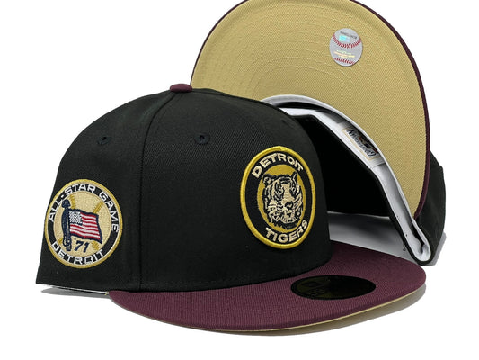 Detroit Tigers 1971 All Star Game Black Maroon Visor Vegas Gold Brim New Era Fitted Hat