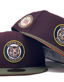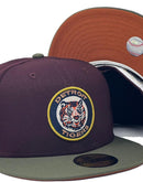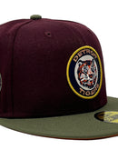 Presenting an exclusive custom Detroit Tigers 1971 all-star game New Era fitted hat only from Sports world. 59Fifty high crown cap. It features all maroon color crown with olive green visor. Front logo in navy, orange and white. gold circle outline. 1971 all-star game side patch on left mid panel. tonal New Era flag on right mid panel on right mid panel. Flat MLB batter man in the back. rust orange under visor. white sweat band. 100 percent polyester. imported from China.