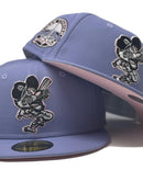 Representing Lavender Detroit tigers 59fifty custom New Era fitted hat from Sports World. 59Fify high crown cap and pink under visor. Front tiger logo black, white and pink. Tiger stadium side patch in left mid panel. White sweat band. 100 percent polyester. Imported from Bangladesh.