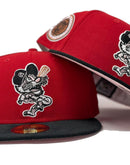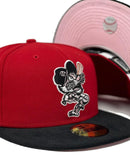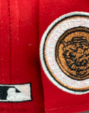 Red Detroit Tigers 1968 World Series Corduroy Visor custom New Era fitted exclusively at Sports World. Front tiger logo in black, white and pink. 1968 world series side patch on metallic copper. Fronts are in light pink with black and white outline. Pink under visor. White sweat band. Crown in 100 percent polyester andΒ visor is 100 percent cotton.